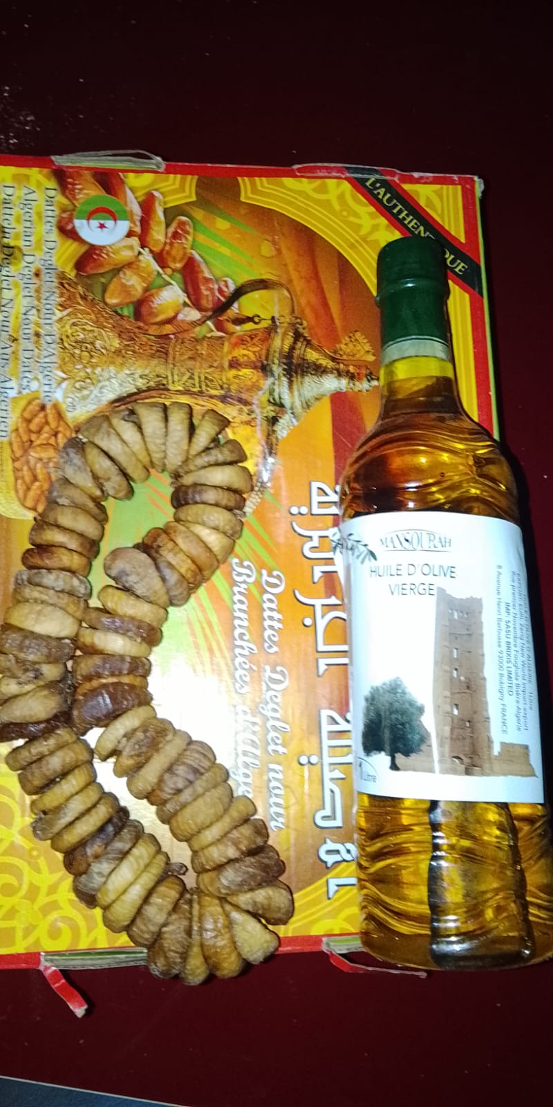 Pack découverte EXISTENCE : Huile d’olive vierge extra 1L de Tlemcen, Figues séchées 500g et Dattes Deglet Nour 3kg d’Algérie. L’essentiel du terroir algérien réuni dans un coffret authentique et généreux.